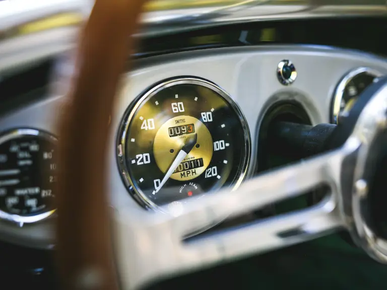 Mechanically, the engine has been built with the same performance modifications used on the Le Mans competitors and available in kit form from the Donald Healey Motor works when this car was new. These include high-compression pistons, high-lift cam, improved distributor, increased-intake H6 carburetors, and a Le Mans cold-air box. The result was a 110-hp engine, capable of a top speed of 109 mph, proven in speed and endurance trials during the car’s period to be sustainable for days on end.
