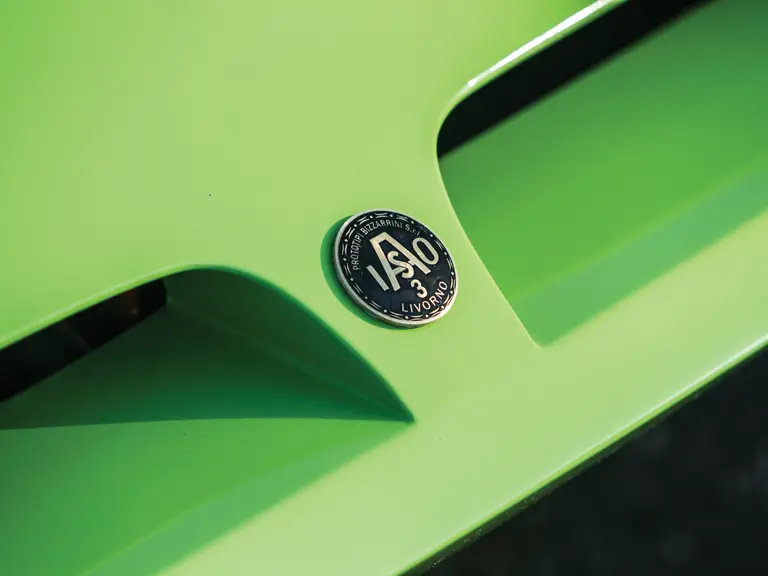 Chassis number B 0216 was originally sold new as an Iso Grifo A3/C to Auto Becker in Germany. As an early car, prior to the Iso/Bizzarrini split, it is believed to be one of only twenty riveted-aluminium Drogo-bodied examples with left-hand drive. As such, it also included many features similar to the Le Mans competition variant, namely the aforementioned riveted bodywork, as well as the side vents and four taillights. It is also believed to have been originally finished in the unique and eye-catching Mela Verde (similar to Lamborghini’s famous Verde Miura), which was only discovered during its recent comprehensive restoration.