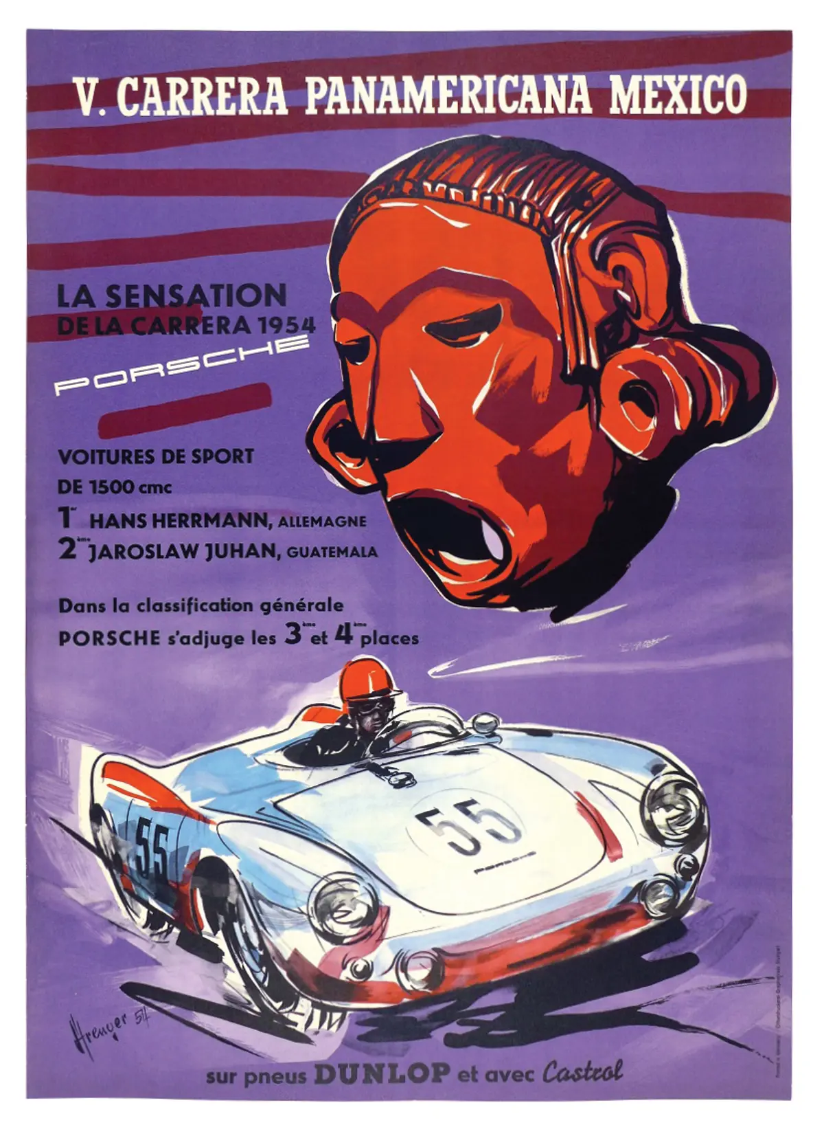 No other manufacturer is as closely linked to the legend of the Carrera Panamericana as Porsche. Such was the significance of the race to the firm that the name “Carrera” would become a permanent feature of Porsche’s model lineup. Porsche had its first taste of victory in 1953, when Guatemalan racer Jose Herrate stole the headlines with a class win in the Small Sports Car category at the wheel of a 550 Coupé—but greater success was to come.