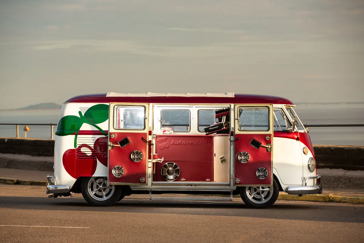 At its heart is a genuine, bona fide sixties Kombi, but there’s no escaping the Pimp My Ride-spec refurb, complete with amplifiers, a mixer, speakers, two turntables, and TVs. You’ll either love it or hate it, and I’m definitely in the first camp. I would take it for the livery alone, but look closer and you’ll see loads of cool little details, like the famous Pacha cherries in place of the VW logo on the front panel and the steering wheel centre.