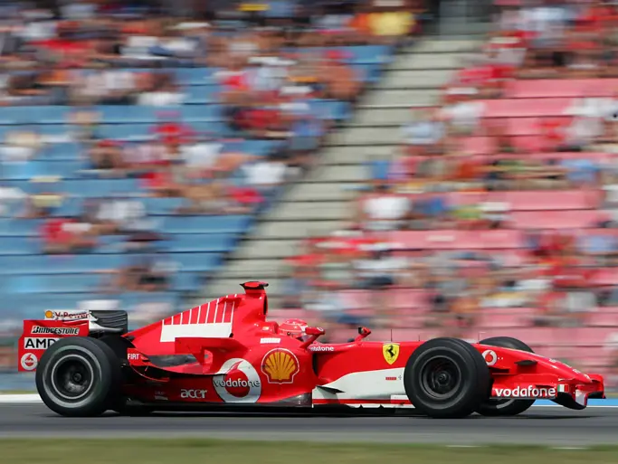 The Ferrari’s fifth and final win came at Hockenheim on 30 July 2006. Here, Schumacher qualified 2nd behind Raikkonen and won the race, with Massa’s P2 giving the Scuderia another maximum points haul. The 2006 German Grand Prix was the final time Schumacher triumphed in front of his adoring countrymen. The chassis was essentially retired after the next race, in Hungary, where Michael sustained collision damage. The car saw out the rest of the season as the spare, and Schumacher received a new chassis.