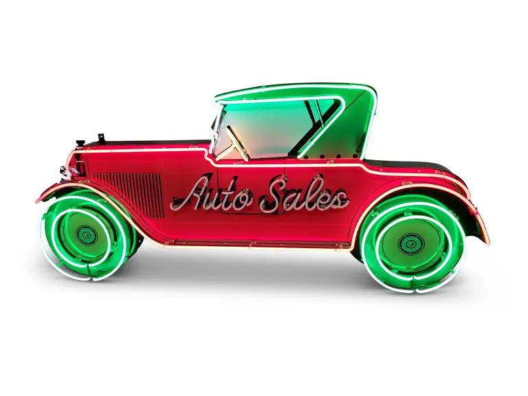 Custom-made flashing and animated tin neon sign.