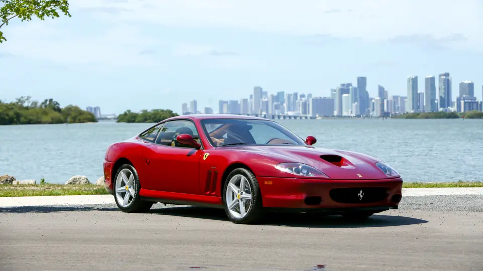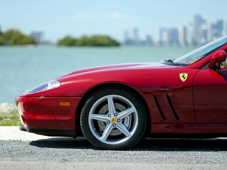 Introduced by Ferrari in 2002, the 575 Maranello was a much-improved version of its 550 predecessor, which itself, a classic front-engine/rear-wheel-drive grand tourer, has often been described as the modern Daytona. Upgrades included a renewed interior, bigger brakes, a larger and more powerful engine, improved aerodynamics, an adaptive suspension, and the efficient Magneti Marelli paddle-shift F1 transmission. With a stout 515 hp on tap, the 575 Maranello F1 sprints from zero to 60 mph in only 4.2 seconds, 150 mph in 22 seconds, and is capable of a top speed of 202 mph. Famous French journalist Paul Frère first drove the 575 Maranello on 1 July 2002 and admired the performance, the paddle-shift F1 gearbox, the all-alloy body panels, the driving position, and the car’s astounding agility on Ferrari’s Fiorano test circuit.