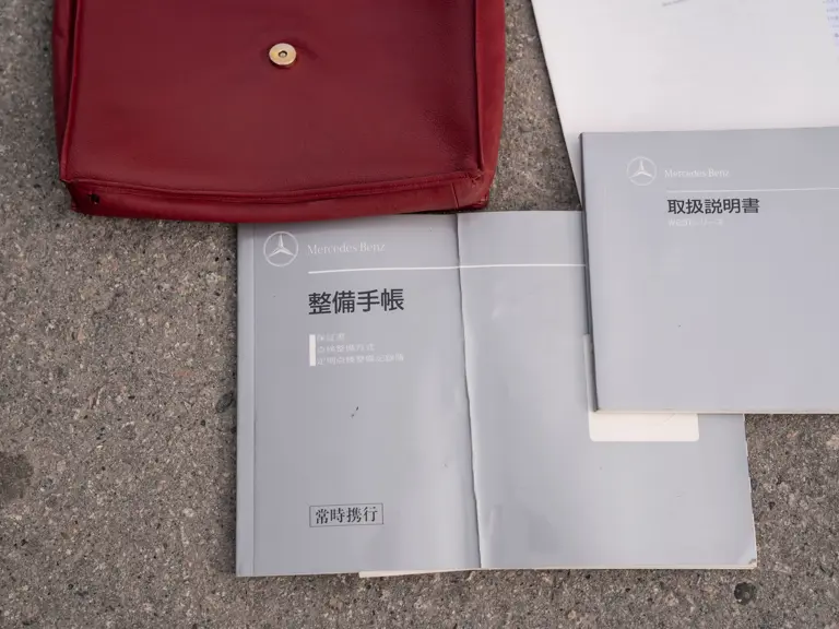 Today the car has logged some 42,000 kilometers (~26,100 miles) on the odometer. This example is a later version that features an airbag steering wheel as well as cloth pepita seat inserts that are rarely seen in the model. The red leather bag containing the factory books and manuals, all printed in Japanese, as well as the factory tool roll issued to the car when new are included.