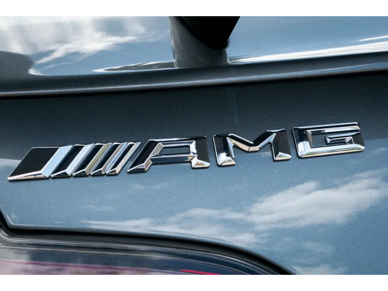 A gaping grille emblazoned with twin chrome bars at a large three-pointed star gives way to a long, low hood. The relatively upright windshield culminates in a sloping roofline that arches gracefully into the truncated tail. Under the long hood, AMG has plenty of space for its 4.0-liter twin-turbocharged V-8 engine, known internally as M178. Like the rest of the AMG GT, the V-8 was developed not in Stuttgart, but in Affalterbach under the watchful eye of AMG chief Tobias Moers. The exhaust manifolds and turbochargers sit inside the engine’s V in a bid to eradicate turbo lag. Dry-sump lubrication ensures reliable track and road performance. The latest version of AMG’s seven-speed dual-clutch gearbox hustles power to the rear wheels via a limited-slip differential.