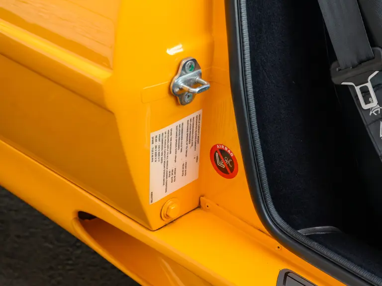 Offered here is a highly desirable late-production Lotus Esprit, showing only 18,050 miles on the odometer at cataloguing time. It is strikingly finished in vibrant New Lotus Yellow (B36) over black leather with yellow piping. Other desirable highlights include polished, staggered OZ Monoblock Nova wheels, round taillights, Brembo brakes, fog lights, heated power mirrors, power windows, air conditioning, and an upgraded Pioneer stereo. A factory Alpine stereo and a glass center roof panel are also included in the sale. A service invoice from August 2024 indicates that the headliner was fully refurbished.