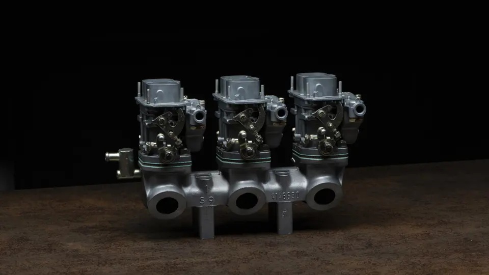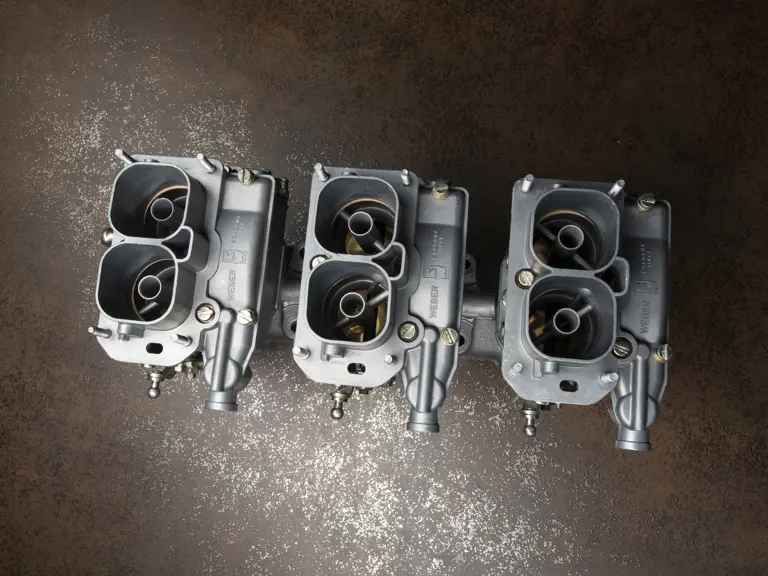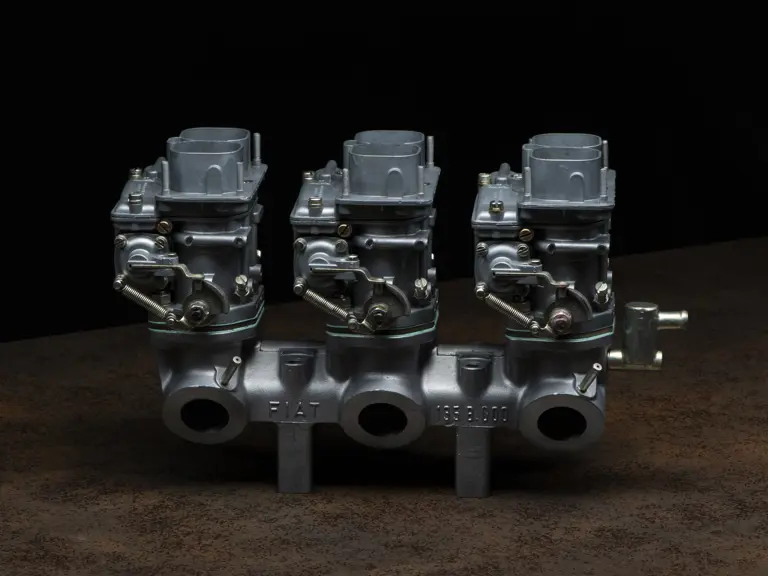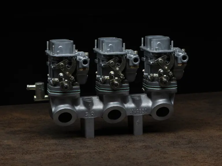 Fitted to a manifold , presented here is a set of three Weber 40 DCN carburetors. This specific type of carburetors would have originally been utilized for a few different applications, namely Fiat’s 2.0-litre Dino engine, which also was fitted to the Ferrari 206 GT Dino. Recently refurbished, these are ready to be fitted and used.