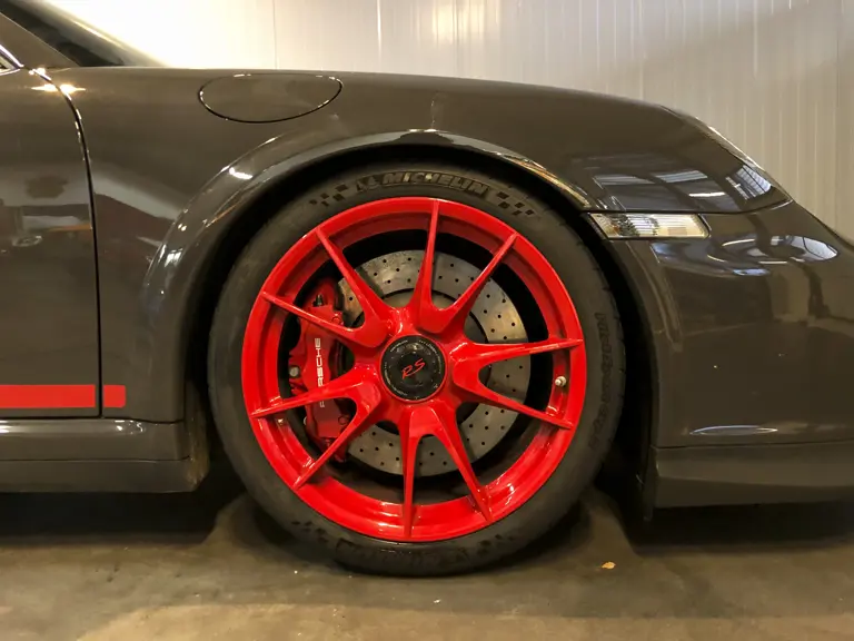 Delivered new to Germany in Grey Black with Guards Red graphics and wheels, this Clubsport package-equipped GT3 RS has travelled just 23,500 km since new. Optional extras in addition to the Clubsport package include adjustable bi-xenon headlights, 90-litre fuel tank, climate control, alcantara headlining, centre console storage compartment lid in alcantara with Porsche logo, handbrake lever and gearshift in alcantara, leather steering wheel, dynamic engine mounts, the PCM package, and a painted roll bar amongst other options.