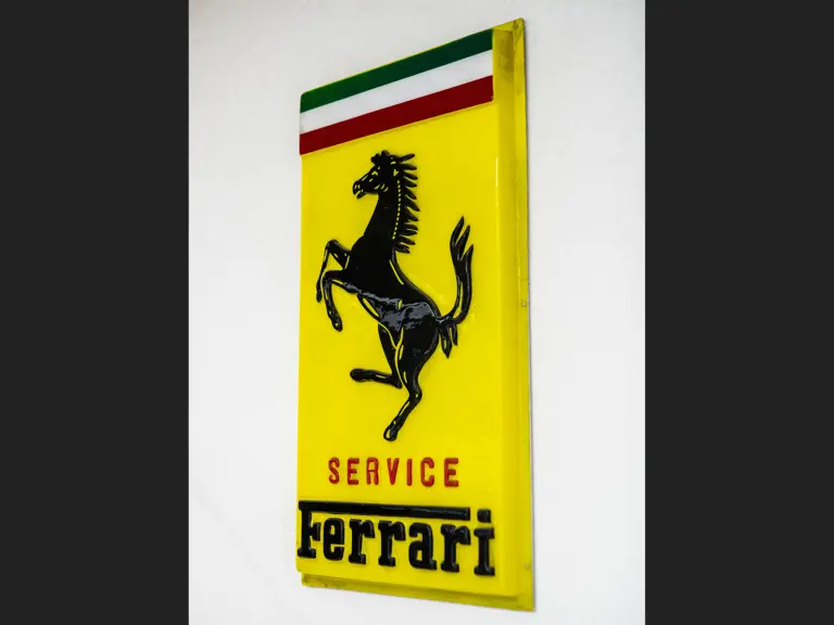 This Ferrari service sign would have been displayed outside of an authorized Ferrari service centre. Presented in good condition with some minor cracks showing, it would be an excellent piece to display in a private collection or workshop.