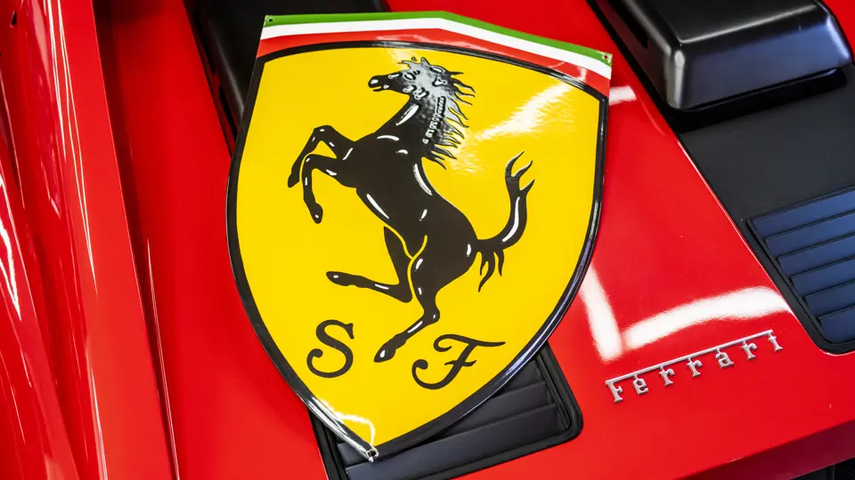 Offered here is an hand-painted sign of the iconic Scuderia Ferrari logo. This would be an excellent addition to any collection.