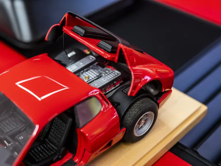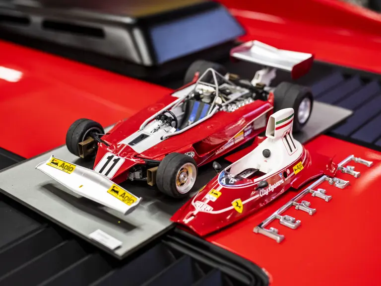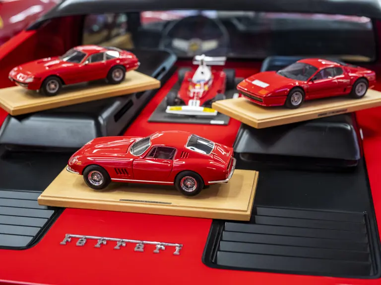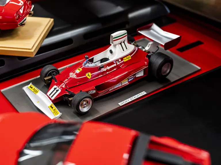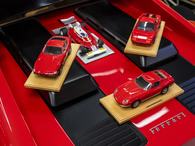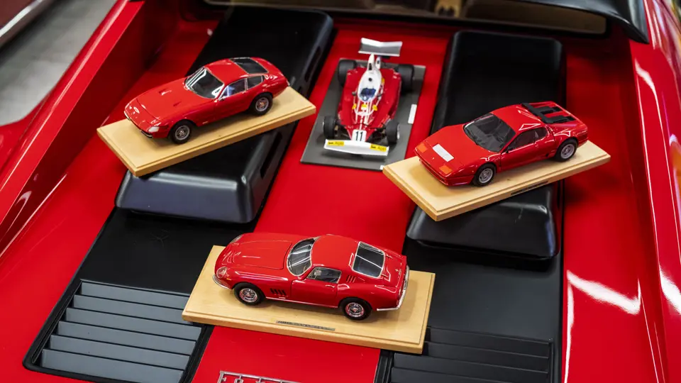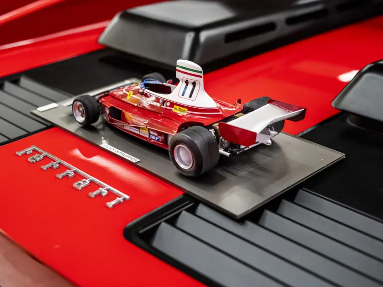 Presented here are models of four landmark Ferrari models: the 365 GTB/4 Daytona, 275 GTB/4, the 512 BB, and 312 T Formula 1 car from 1975, all built to 1:18 scale. The Daytona, 275 GTB/4 and the 512 BB are presented in classic Rosso Corsa over a Black interior, while the 312 T is finished in Clay Regazzoni’s livery for the 1975 Formula 1 season, where he finished 5th in the Driver’s Championship.
