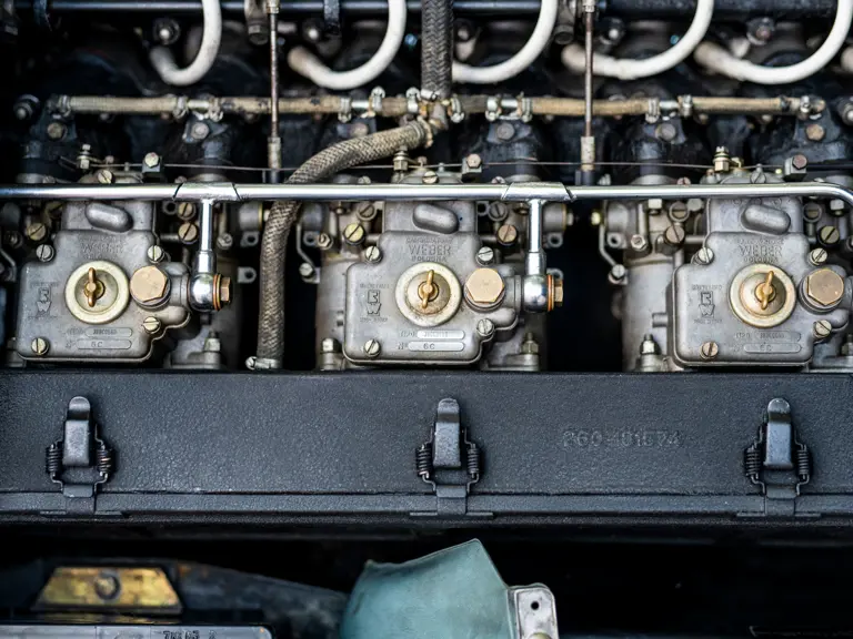 Recently, the car has received a full service by Officina Sauro in Bologna to bring it back to running and driving condition. The air conditioning system has been converted to a more modern setup, and the original radio is said to work well. New Michelin XWX tyres were fitted (in June 2015) and the suspension was overhauled as well. The car’s electrical systems were given a check-over and the Weber carbs were overhauled as well. Invoices from this work are on file. While the bodywork has been refreshed over the years, the car’s interior remains untouched. The leather, interior rubbers, and carpets show wonderful patina and can continue to be used and enjoyed with careful preservation. Most importantly, the car has been certified by Ferrari Classiche and retains its original engine.