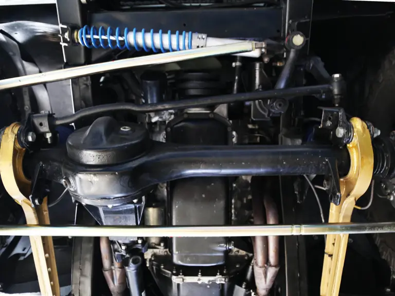 Recently, the car underwent a full nut-and-bolt restoration. However, in order to better equip the car for the 21st century, numerous upgrades were implemented throughout. The interior boasts a Safety Devices roll cage, suede Tyrex steering wheel, a JVC infotainment system, new Exmoor Trim black canvas soft top, and aluminum gear shifters for both the transmission and high and low range transfer case. When exploring the exterior, the car utilizes Bearmach shock absorbers, Bearmach Blue +5CM Smooth Ride lift springs, allowing for larger Cooper Discoverer SST tires. Further upgrades include headers, stainless steel exhaust, stainless steel extended brake lines, a Terrafirma wireless remote winch, and upgraded LED headlamps. A complete list of upgrades can be found in the digital file. As if its upgrades and current condition weren’t enough, this car has just covered 35 kilometers since its restoration.