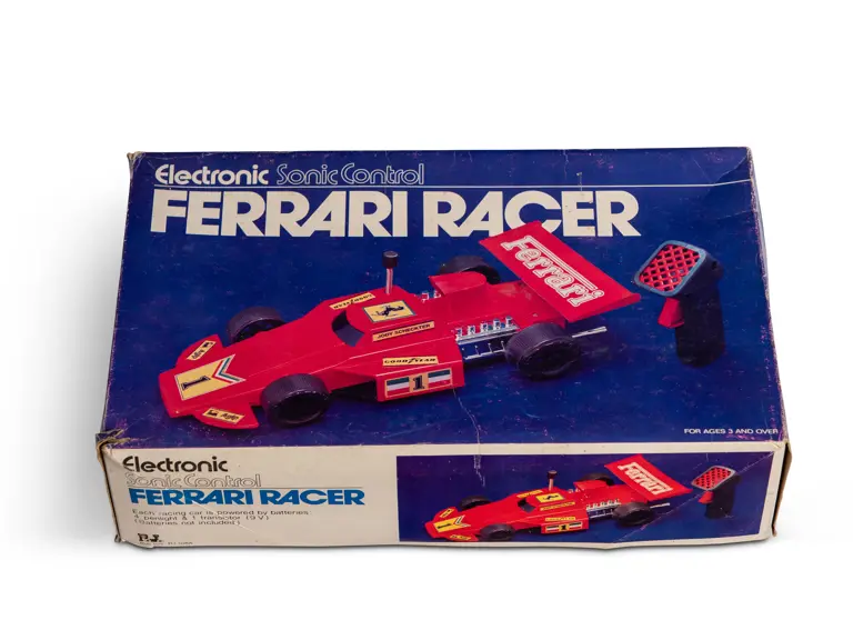 Sonic Control battery-powered Ferrari Racer with its original box. Forerunner to the remote controlled toy car.