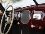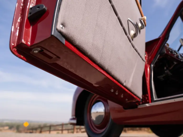 The car’s original and complete interior was intact, and the factory pieces were used as patterns to create a new set of seat covers, door cards, headliner, and carpeting stitched and installed by Sewfine of South Denver, Colorado. Both the driver and passenger seats were reconstructed with more substantial frames, springing, and fresh padding material. The instrument panel knobs and switches were refurbished, the dashboard instruments sent out to North Hollywood Speedometer. The consignor restored the hardwood door caps and states that nearly all the trim is original.