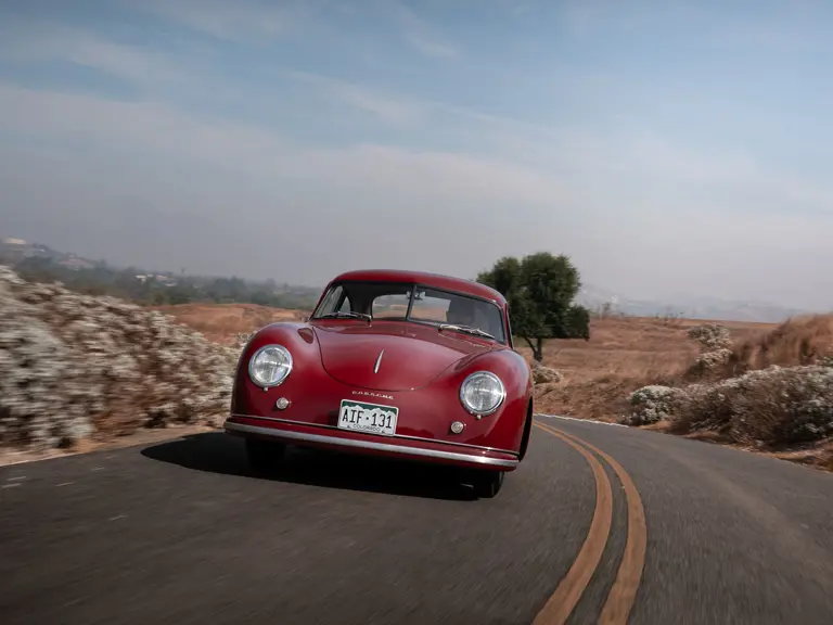 This delectable Porsche 356 Model 51 coupe was part of Porsche’s second order to manufacturing partner Karrosserie Reutter. It was originally delivered with a Type 506 1,300-cubic-centimeter four-cylinder-opposed air-cooled engine (number 20025); with a pair of 32-milimeter Solex single-throat carburetors and 6.5 compression, this engine developed a modest 44 brake horsepower. As was common with many of these early cars, this example was replaced with a more powerful motor, stamped with number 20776 with castings from the Fall of 1952.