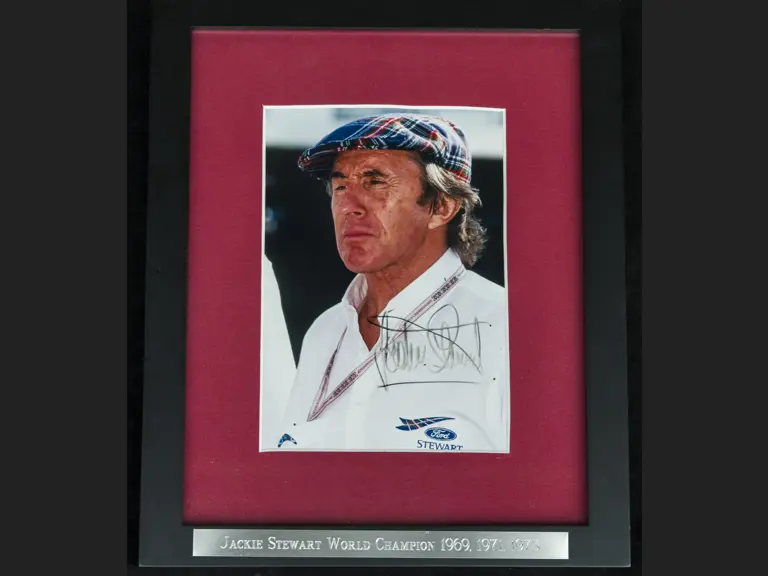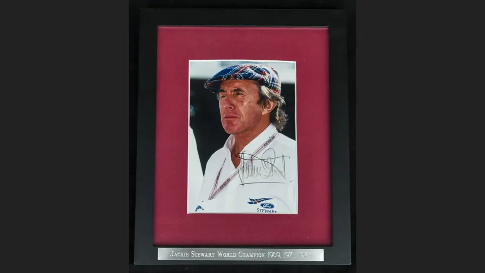 Framed and glazed with an engraved name plaque of the driver.