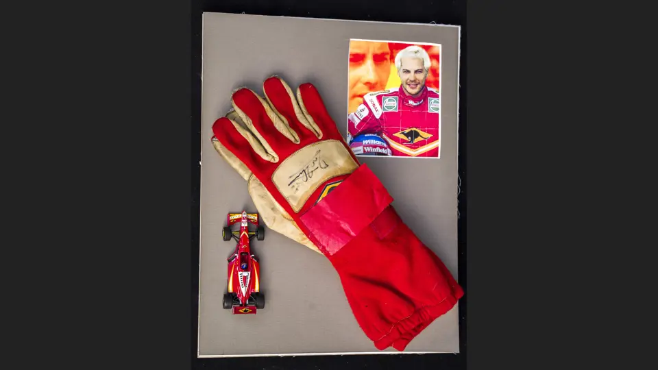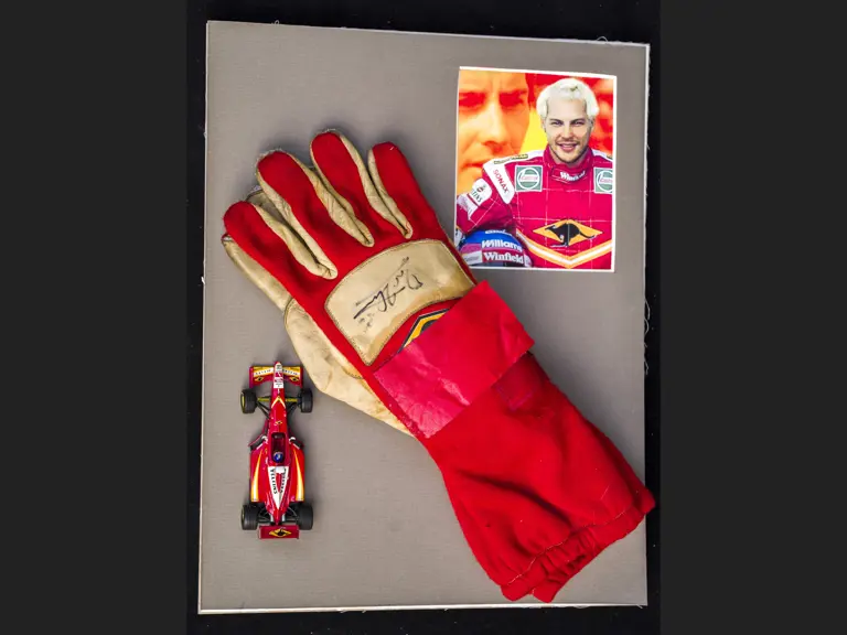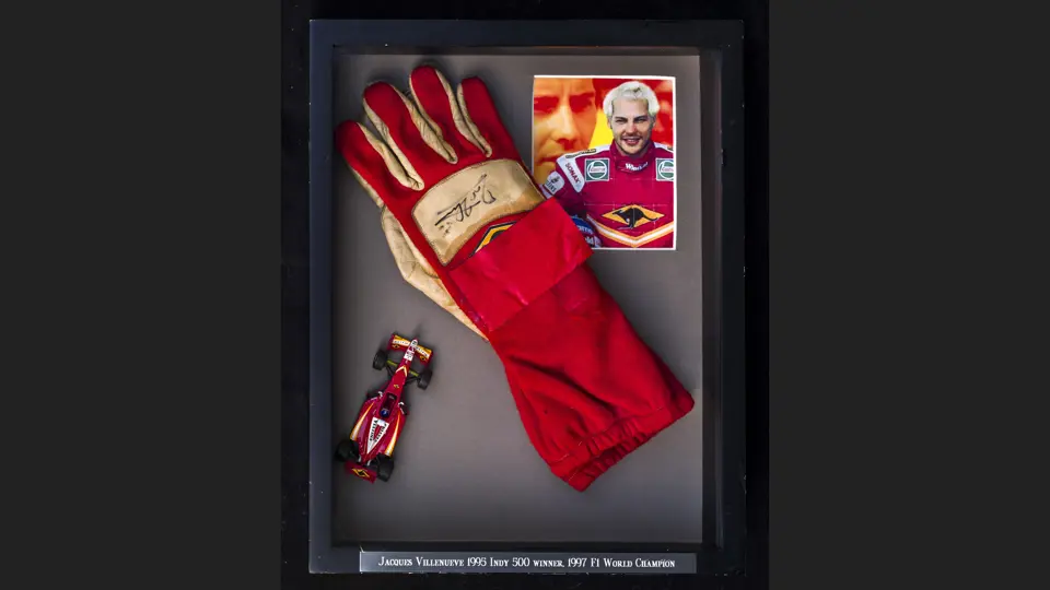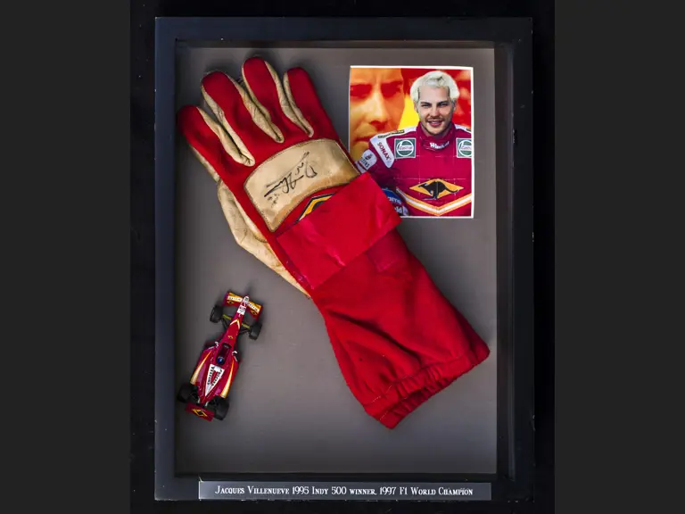 Used during the German Grand Prix where Villeneuve placed 3rd. Jacques Villeneuve is a 1995 Cart Champion, 1995 Indy 500 winner, and 1997 Formula 1 World Champion.