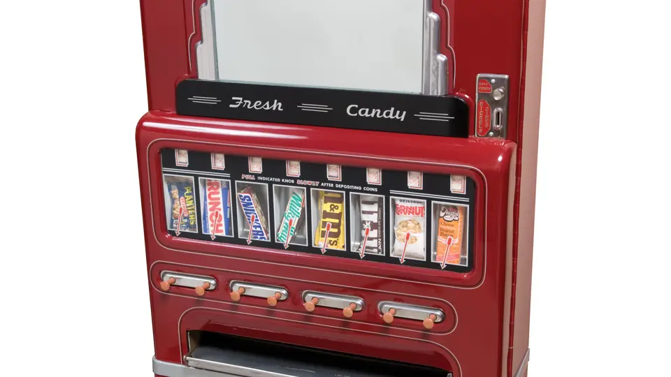 29x61x14 inches. Originally displayed in the lobbies of better movie theaters, the Stoner Theater machine displays beautiful Art Deco styling and features a mirror to quickly check one�s hair before the show. Professionally restored; outstanding presentation.