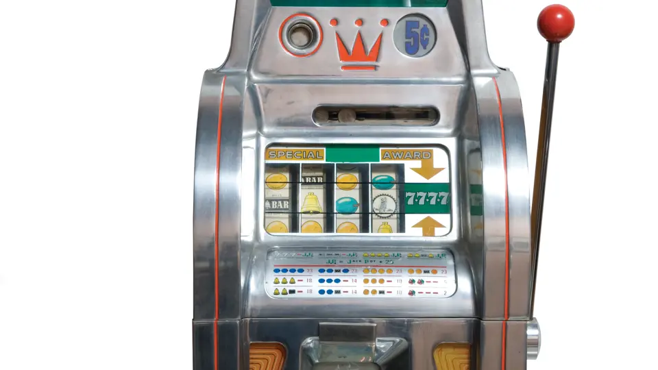 16.5x37x18 inches. Offered here is an attractive, well preserved Mills slot machine featuring original front decal designs and a bright face. Good condition overall. Comes complete with a wood display base.