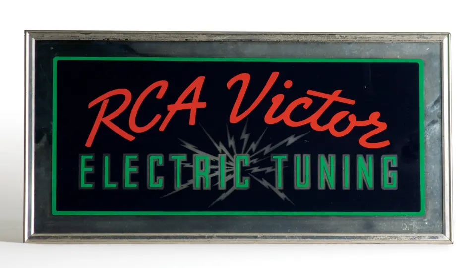 16.25x8.25x6.5 inches. Offered here is an original RCA Victor sign that illuminates from within. Presentable condition, some slight wear to lettering.