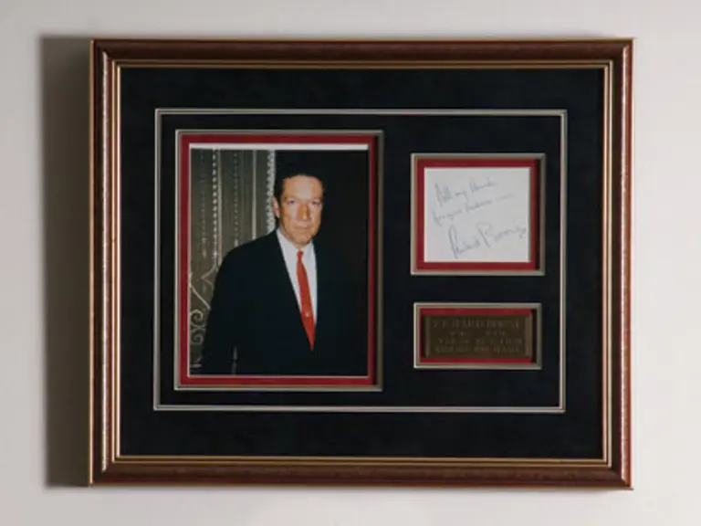 22x18 inches. Most famously known for his starring role in the hit television series Have Gun - Will Travel, Richard Boone appeared in over fifty films. Offered here is a custom framed display containing Boone�s photo and autograph.