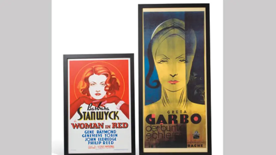 Lot includes two beautiful, high quality reproduction posters featuring Stanwyck and Garbo, leading ladies of the silver screen. Excellent condition.