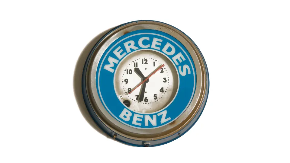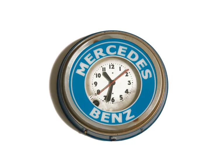 22.5x6 inches. This original illuminated Mercedes-Benz clock is in presentable condition. Surface shows a few notable scratches.