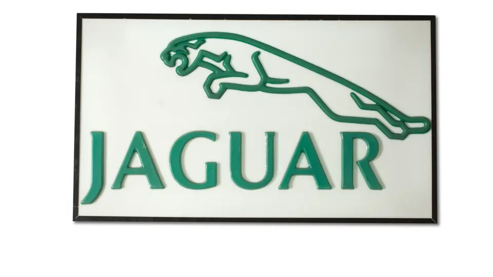 65.5x37.5x4 inches. Offered here is an original Jaguar dealer sign featuring a three-dimensional Jaguar insignia. Excellent condition.