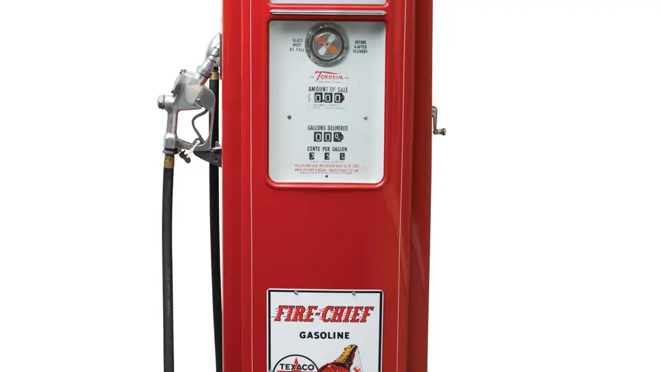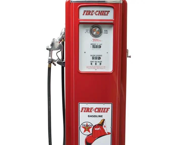 28x93x18 inches. This Tokheim Model 39 pump boasts a beautiful professional restoration in Texaco Fire Chief Gasoline colors and graphics. Features a reproduction pump plate, ad glass and globe.