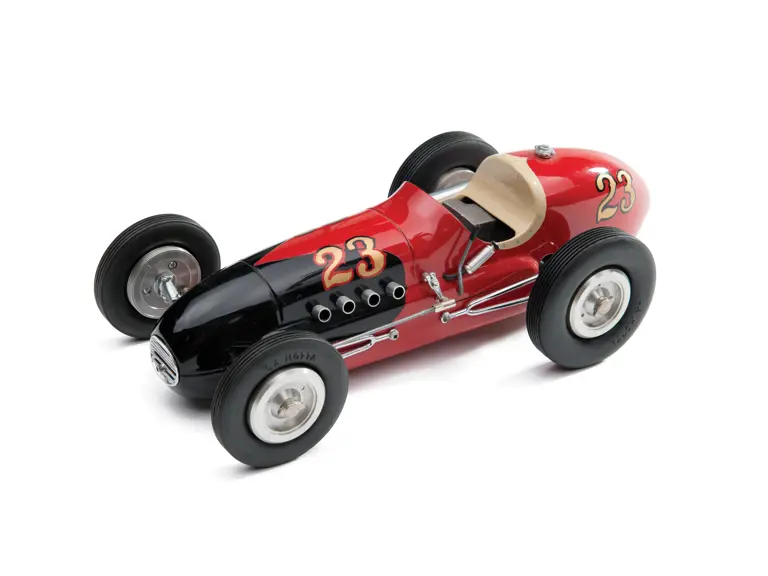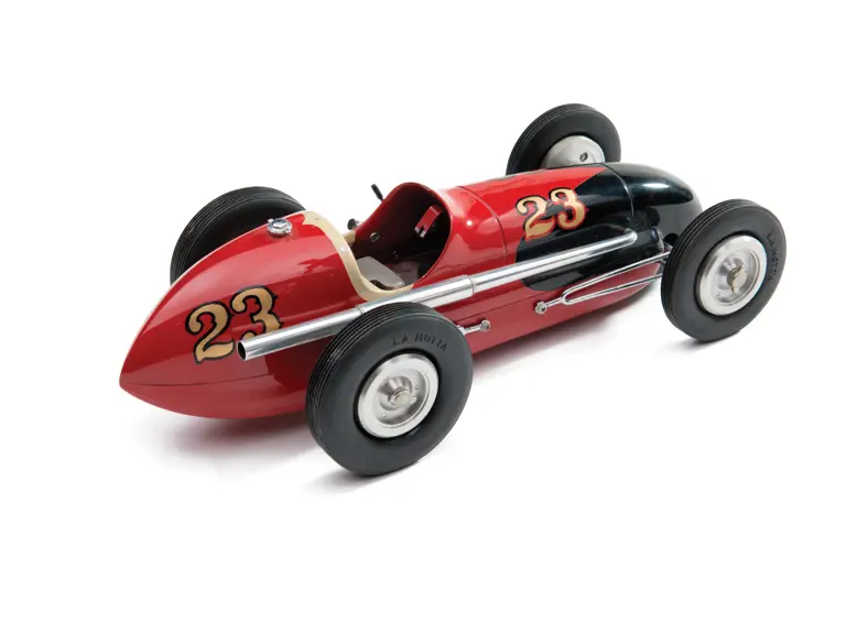 This lot includes a pair of outstanding vintage race cars models. The #88 “Fronty Ford” is striking in its red and white livery. The Fronty Fords got their nickname from the famed Frontenac overhead-valve head on the Model T engine. The #23 race car model is impressive, especially with its hand-painted race number. Both models are in very good condition.
