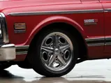 This 1972 C10 Cheyenne Pickup was well-equipped from new, but it has been treated to further upgrades as well. It was originally built as a 350 CID automatic transmission truck with power steering, power front disc brakes, and factory air conditioning, but it now has tuned-port fuel injection, making it good for an estimated 300 horsepower; a 700R4 four-speed overdrive Hydra-Matic; and Intro forged billet wheels. The latter, which are mounted with 18x8 fronts that sport 245/40-18 BF Goodrich G-Force T/A radials and 20x9 rears that are mounted with 295/45-20 tires, give it an appreciable and stylish rake.