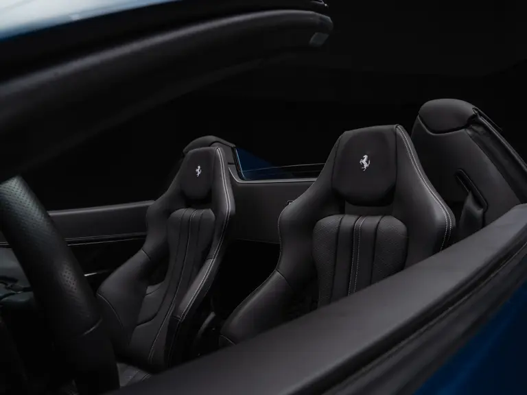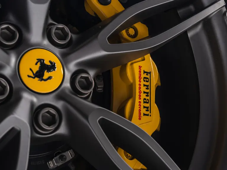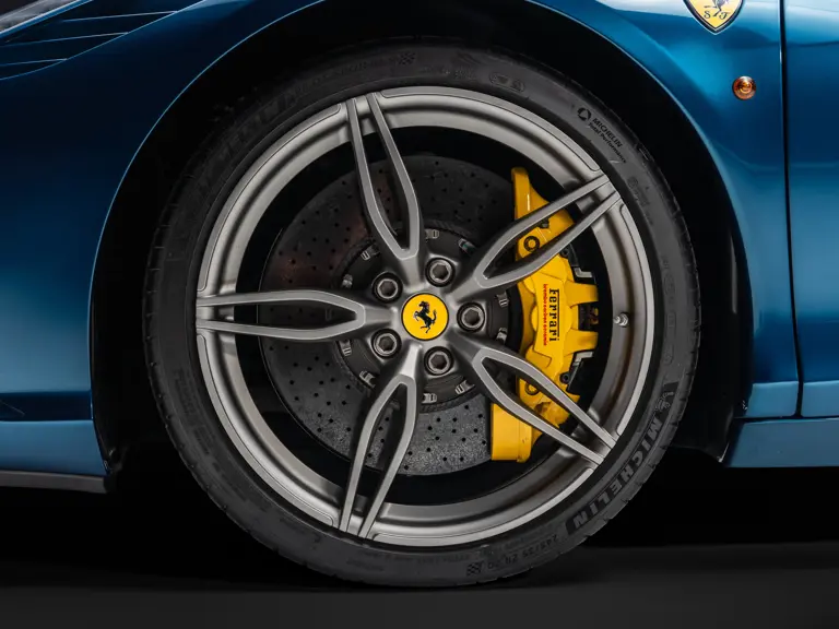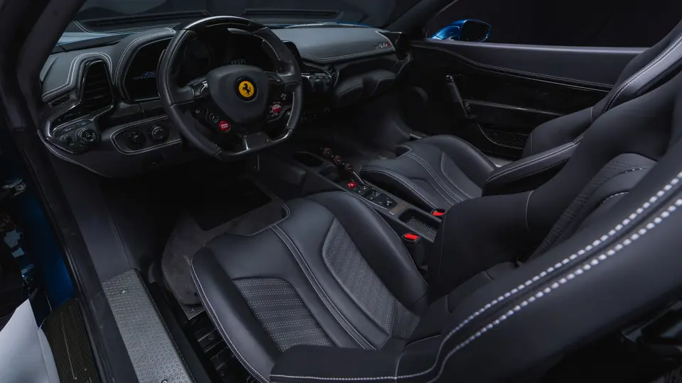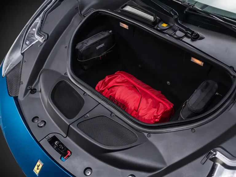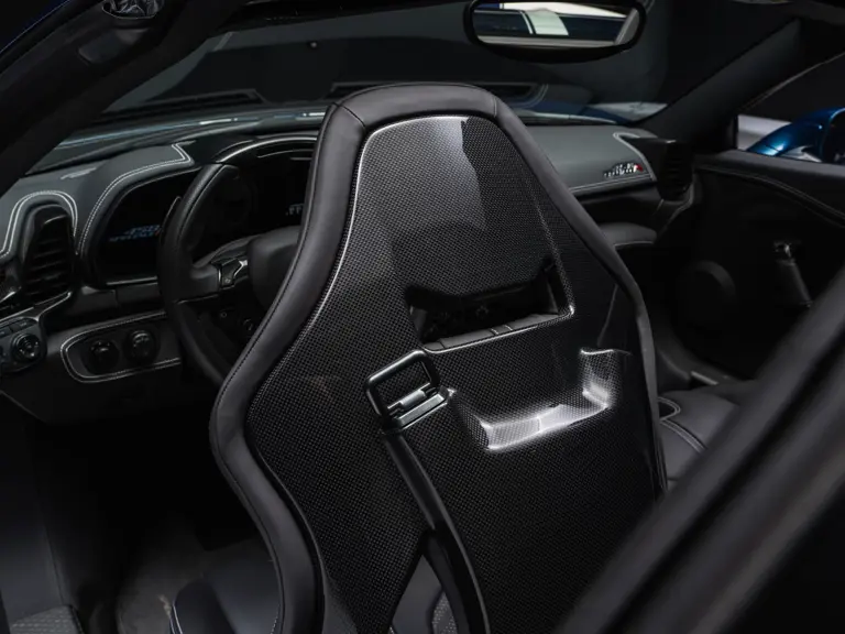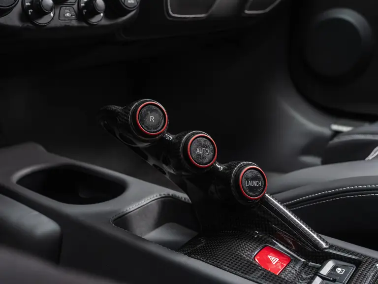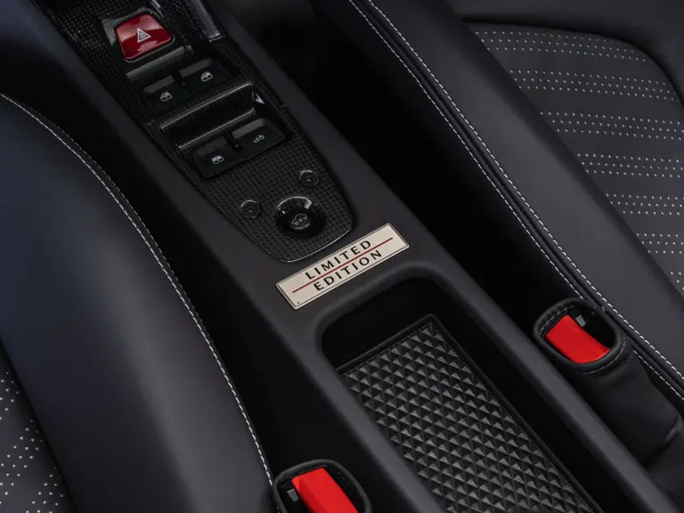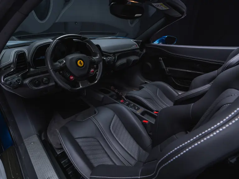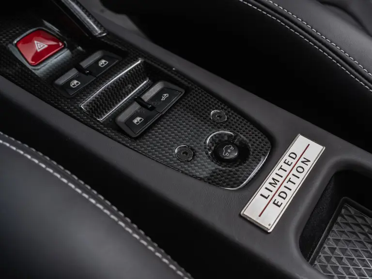 While the Speciale A marked a significant 90-kilogram weight saving over the 458 Spider, this car still boasts an exquisite, leather-lined interior. The carbon-style racing seats are trimmed in Charcoal hide and feature white Cavallinos stitched into the headrests. The upper and lower sections of the dashboard, plus the centre tunnel, similarly wear Charcoal leather and are complemented by white special stitching. Notably tying into the colour theme, the tachometer was also configured in white. In addition, the 458 Speciale A benefits from front and rear parking sensors, a rear-view camera, cruise control, adaptive headlights, plus a front-axle lift system.