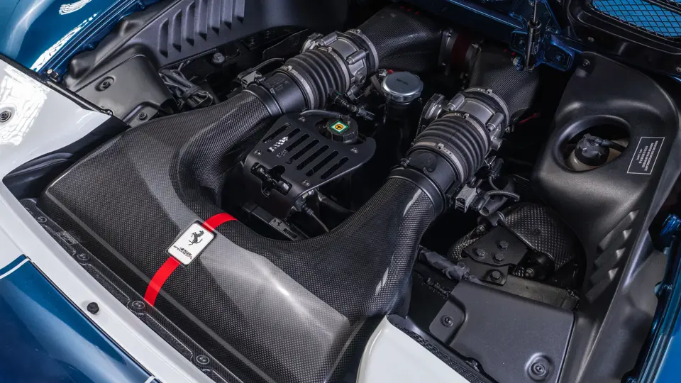 - Swansong for the naturally aspirated Ferrari V-8 engine; displaces 4.5 litres to produce 597 horsepower at a screaming 9,000 rpm