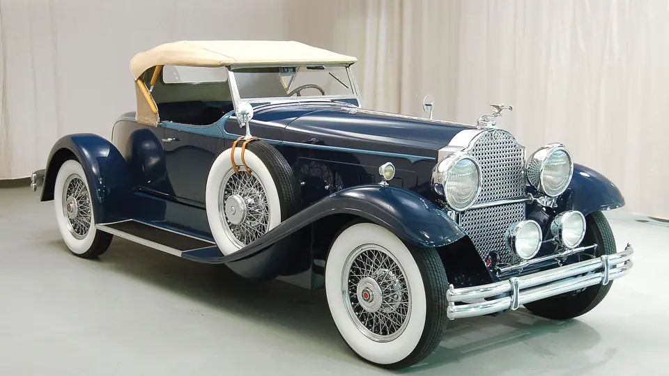The 734 Speedster was Packards sports car. It utilized a highly modified Deluxe Eight 385 cubic inch straight eight and 4-speed gearbox in a 2 seat body capable of over 100 mph as it came from the factory. Only 113 are believed to have been built. With so few built and readily available components, a few exceptionally well built Speedsters have been built over the years, including this beautifully presented example with chassis number 184029 and engine number 184015 appropriate to the original 1930 Packard 734 series. Finished in blue with a light blue accent and dark blue leather upholstery. The car is equipped with chrome wire wheels, whitewall tires with dual sidemount spares, Pilot-Ray driving lights and a radiator stoneguard. A fabulous Packard superbly restored to AACA National First Prize standards.