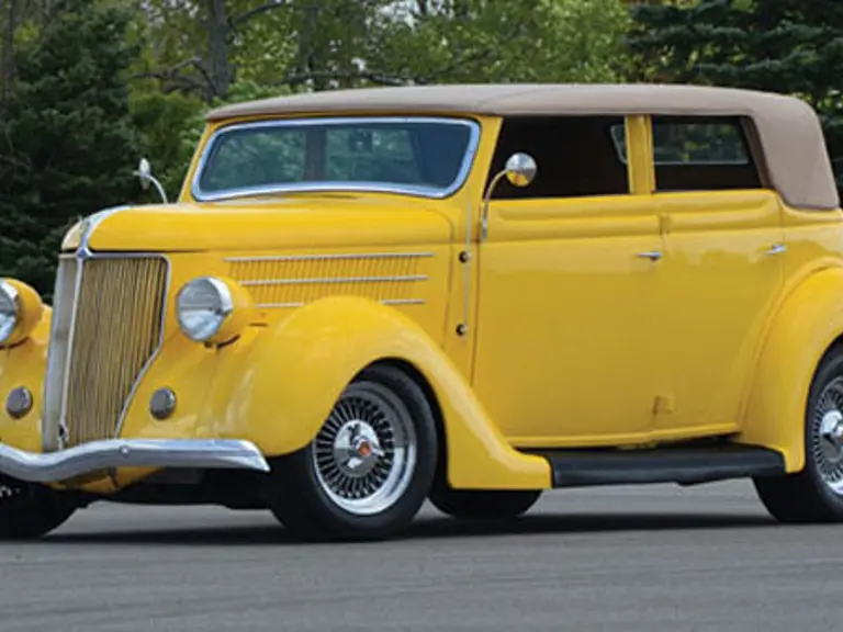A very attractive and well engineered street rod, it is powered by a 351 Windsor V-8 engine which has been modified with Ford SVO heads, oversized valves, competition roller cam, MSD ignition and custom manifolds. The chassis features a dropped front axle and a 9” Ford rear end. The body has a custom designed, tan leather interior and a fully removable “Carson” style top assembly. This street rod is in excellent condition and has been driven less than 5,000 since it was completed.