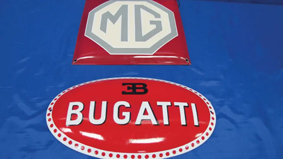 MG Porcelain Sign, Bugatti Porcelain Sign
