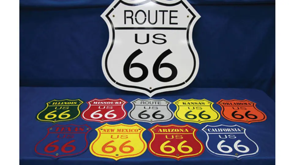 1 Large Metal Route 66 Sign, 1 Small Metal Route 66 Sign, 8 US 66 State Signs