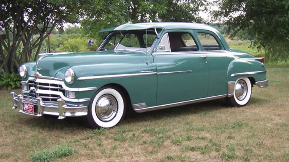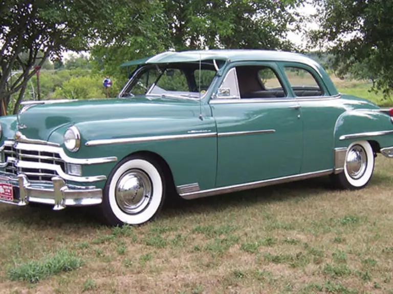 This 1949 Chrysler Windsor Clube Coupe is in mostly original condition, registering 57,000 miles from new. The car is equipped with a six-cylinder engine and Fluid-Drive transmission. The car displays its original paint with minor touch-ups and is complemented by a beautiful original interior, along with nice chrome and stainless trim. This example is fitted with optional windshield visor, new radial whitewall tires and retains paperwork from the dealership.