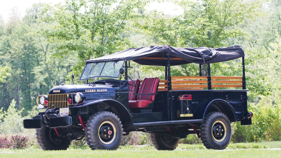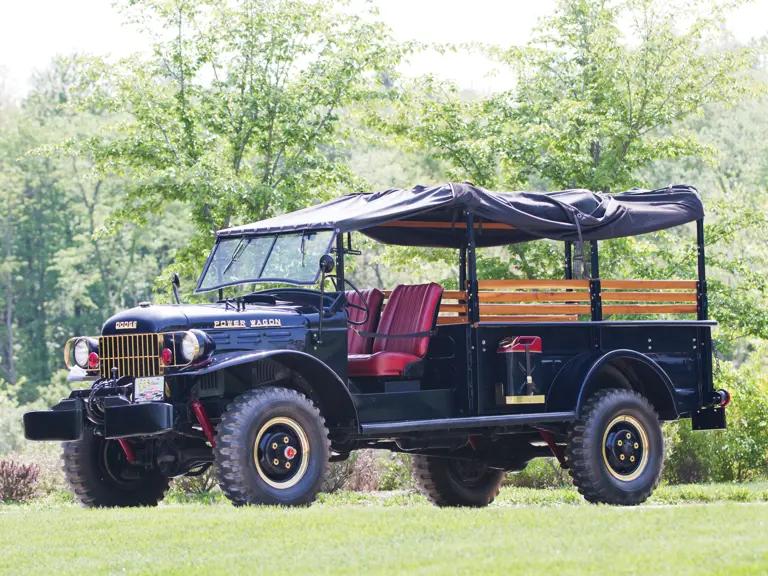 Dodge’s iconic Power Wagon was born of World War II. As they did for the Jeep, at war’s end thousands of soldiers had affection for the Dodge WC-series military weapons carriers, command cars and communication vans. Using the same rugged mechanical components as the military vehicles, the Power Wagon debuted to the civilian market late in 1945. Only a slightly blunted nose, conventional lighting and choice of colors distinguished it from its enlisted forebears. Nearly all of them were closed-cab pickups.