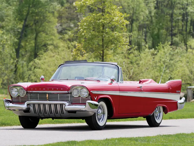 After Chrysler Corporation introduced Virgil Exner’s “Forward Look” for 1955, it was hard to imagine how the formerly conservative company would top it. Two years later, all was revealed. The dramatic new tailfin styling had jumped, by Chrysler’s account, a full three years: suddenly, according to the ads, it was 1960.