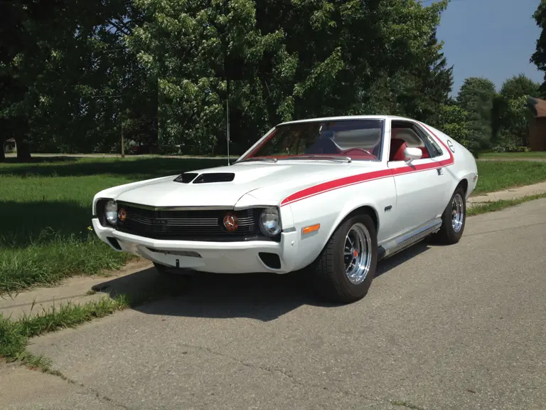 1970 is the lowest production year for the 2 seater AMX. The short wheel base 2 seater model was only made in 1968, 1969 and 1970. This is 1 of just 747 examples originally built with the 360 V8 engine and A-727 TorqueFlite powertrain. It has a complete new interior with red upholstery and matching carpeting. Attractively finished in white with a red accent stripe. This very fast and very rare AMX also includes Magnum 500 wheels, factory-optional side exhaust and a shop manual.