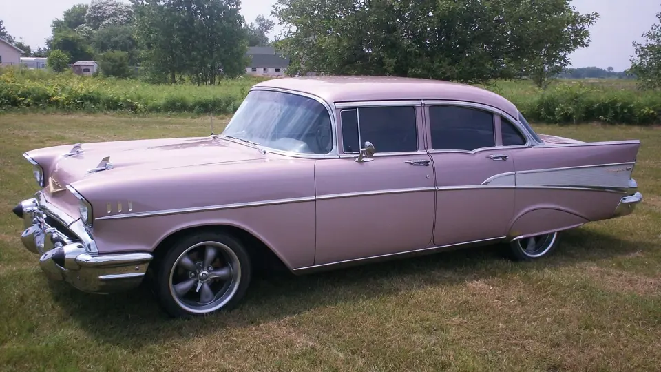 On offer we have this 1957 Chevrolet Bel Air that is finished in Dusk Pearl. The exterior of this Chevrolet has very straight stainless and chrome trim elements. It is fitted with a custom white interior and also features Vintage Air conditioning and heat, plus an AM/FM/cassette and tinted windows.