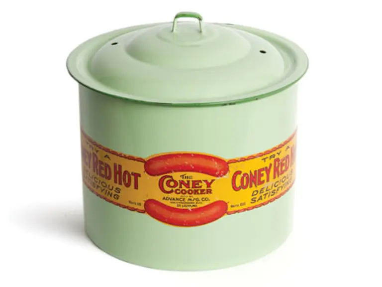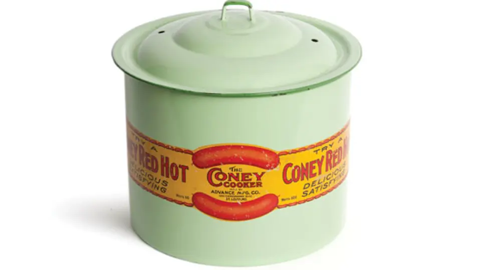 Vintage enameled “Coney Red Hots” Canister/Cooker.