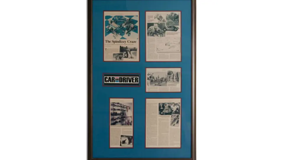 A framed feature article covering the hobby of the "Spindizzy" Tether Car Racers.
