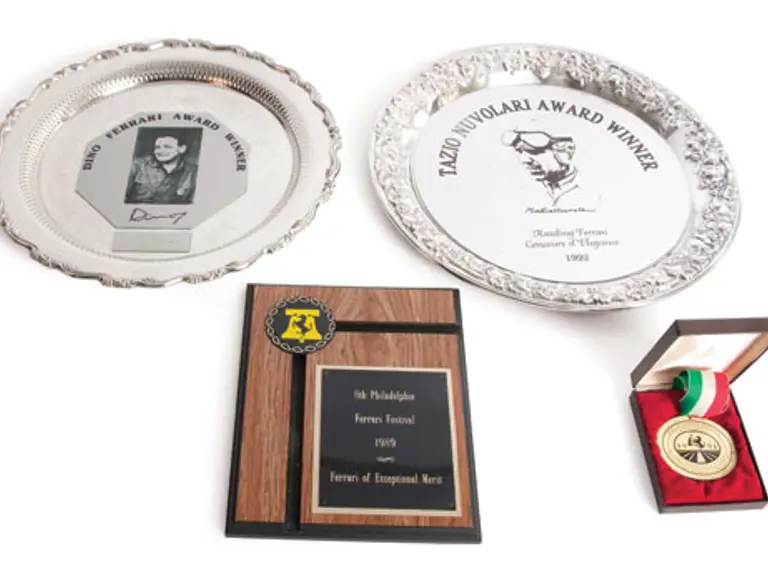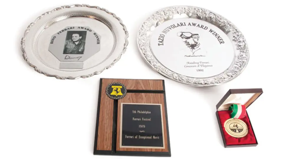 Various awards collected by Kirk White, spread over a number of years and a number of fine automobiles.