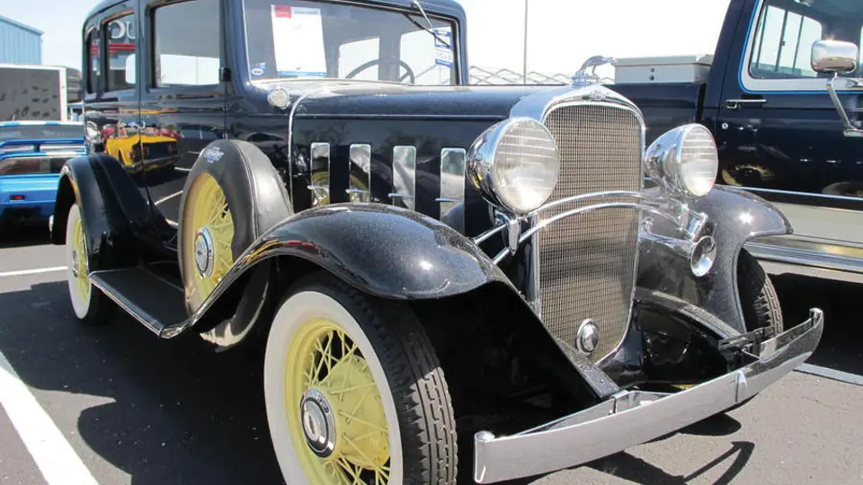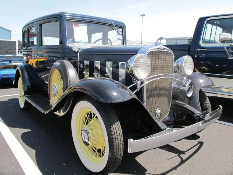 The 1932 Chevrolet Confederate Series BA was marketed by GM as the "Baby Cadillac". It featured a Cadillac-style radiator shell and chrome plated rectangular opening doors to cool the engine in the hood sides instead of louvers. It was the first year that a synchromesh transmission was offered in all three forward gears.