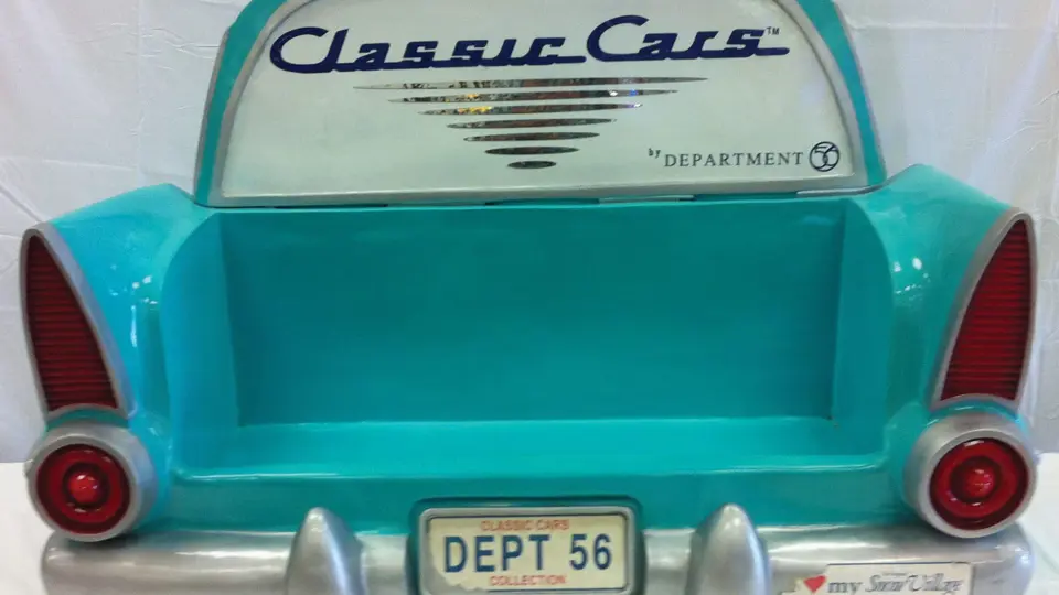 Classic 50's Car Rear End Wall Shelf By Dept 56-very unique collectible vintage 50's car rear end-it measures 26" H x 38" W x 14" D-it has two (2) holes in the back for easy mounting/display-great for 50's collector's-in like new condition