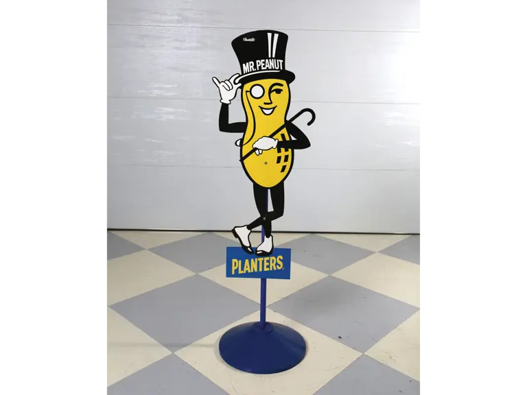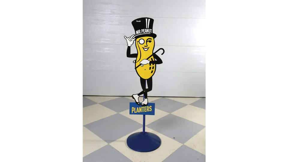 Mr. Peanut Die Cut Figural Sign Mounted On A Pole With Heavy Base