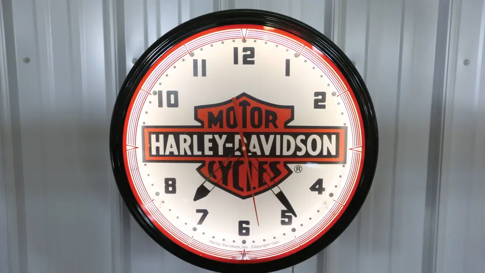 Circa 1990's 26' Diameter Neon Clock With The Bar And Shield logo